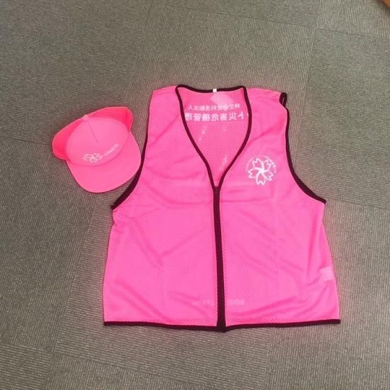 団体のロゴ、イメージカラーがピンク色(桜色)であるため、濃いめのピンク色の下地に白色で団体名とロゴを入れました。